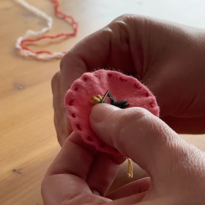 Всичко започва с избора на мек филц и палитра от цветни конци.