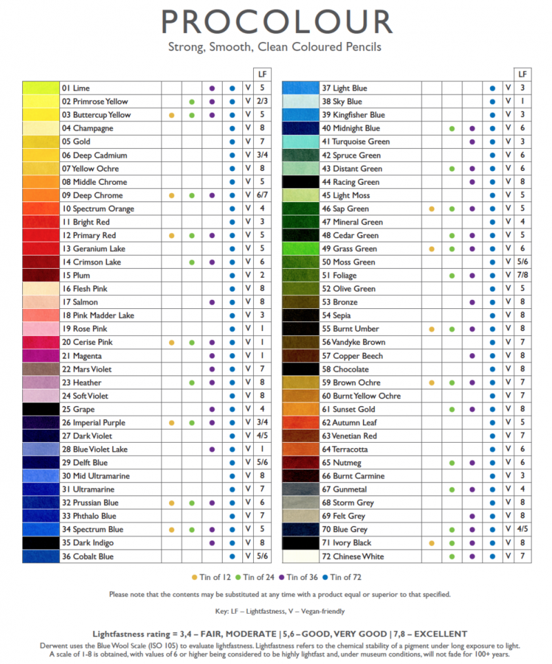 The Procolour range is a brand new pencil series by the British brand Derwent, they are a bit softer than the Artist series and a bit harder than the Coloursoft series.