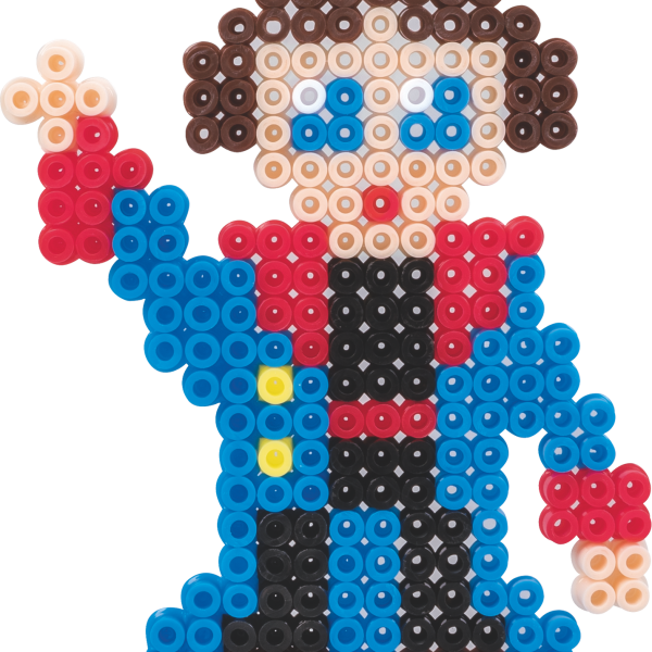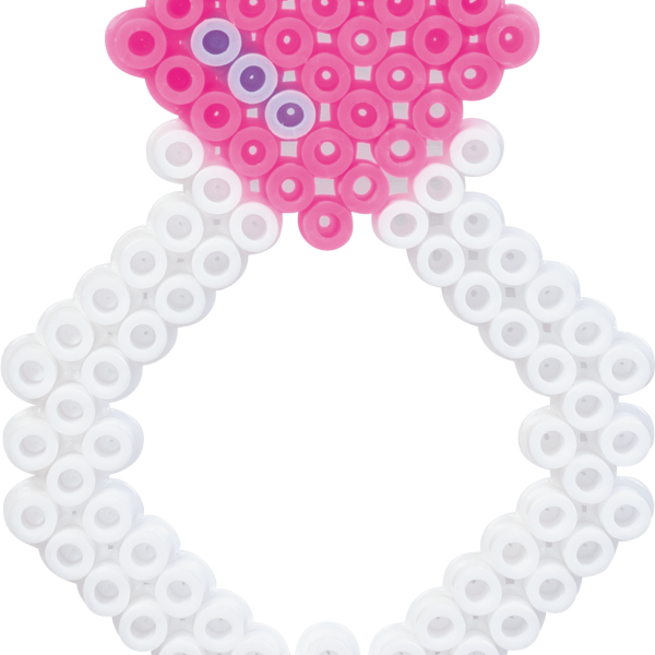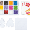 Комплектът съдържа материали за изработка на фигури и триизмерни модели от цветни пластмасови мъниста.