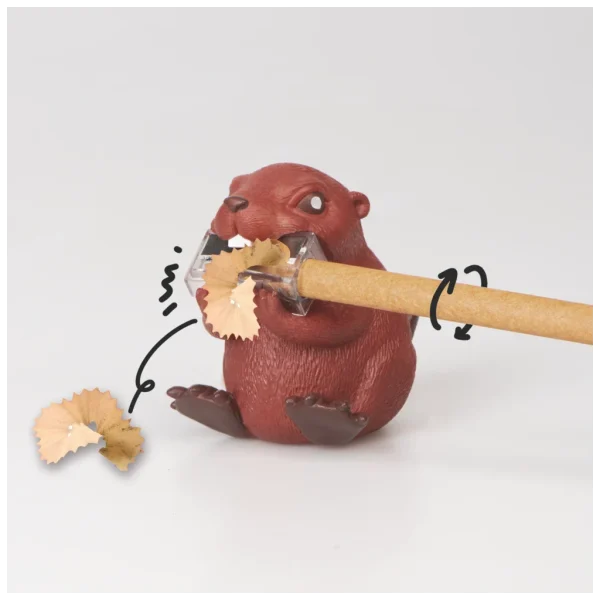 Дизайнът е сполучлив, защото бобрите са известни с това, че гризат дървета, точно както тази острилка подостря дървените моливи.