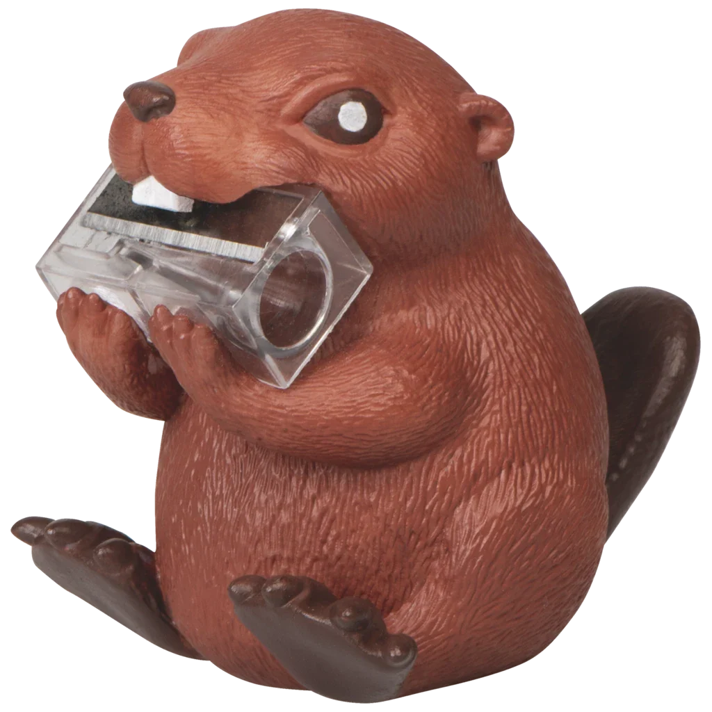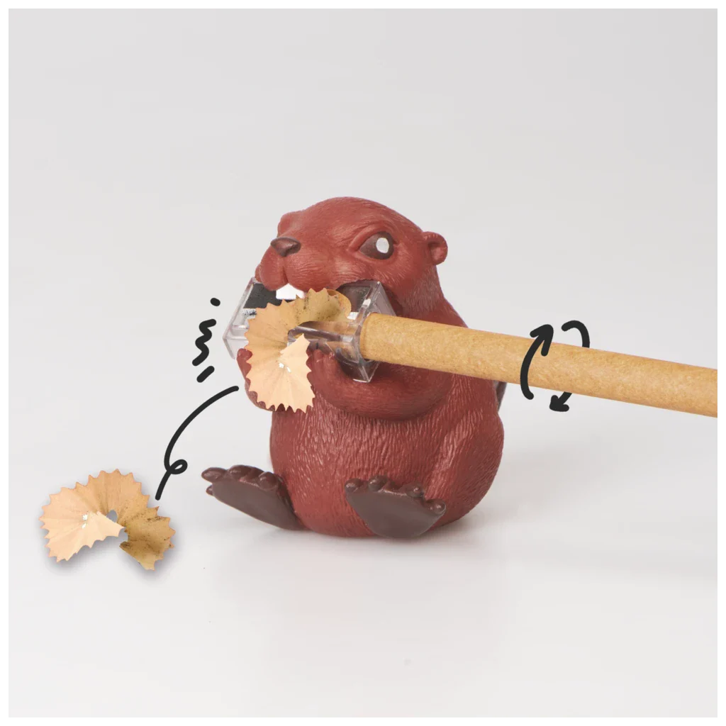 Дизайнът е сполучлив, защото бобрите са известни с това, че гризат дървета, точно както тази острилка подостря дървените моливи.