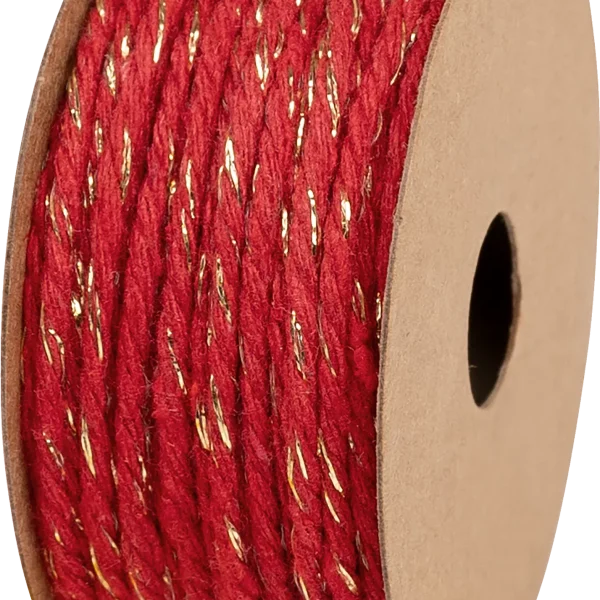 Памучен Шнур : Ø 2 mm : 10 Метра : Червен със Златна Нишка