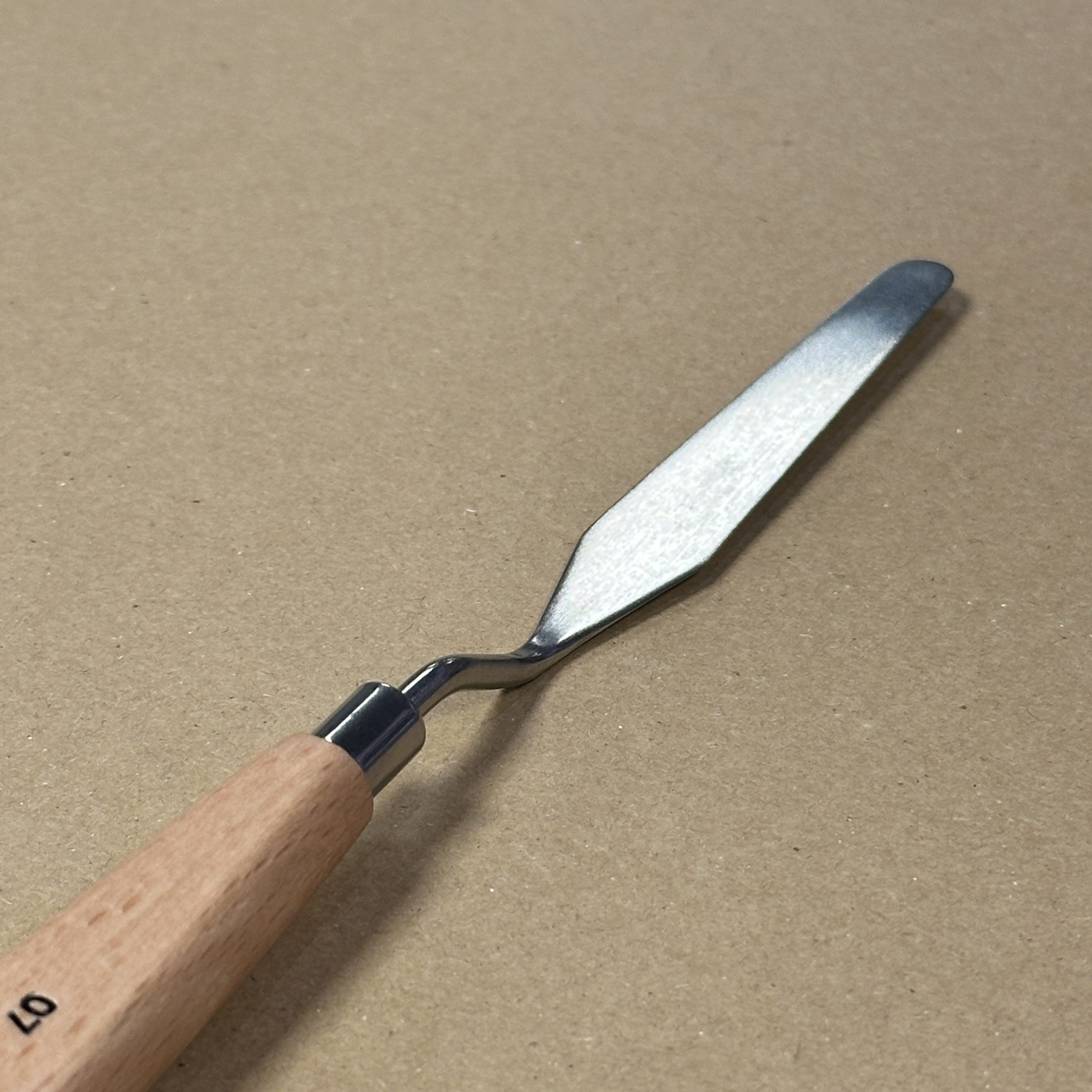 Заоблена шпатула за рисуване с гъсти бои като темперни, акрилни и маслени с дължина на острието 8.5 cm.
