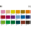 Долен ред: 049 Небесносиньо, 017 Киселинносиньо, 069 Кобалтоносиньо, 042 Ултрамарин, 035 Прускосиньо, 018 Жълто-зелено, 005 Бледозелено, 072 Тревистозелено, 002 Нефритенозелено, 070 Охра, 046 Печена умбра, 015 Черно.