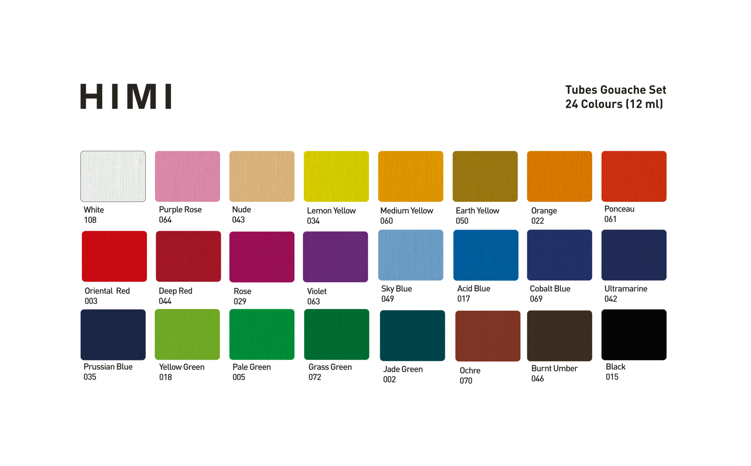 Темперните бои на HIMI включват 12 ярки цвята.
